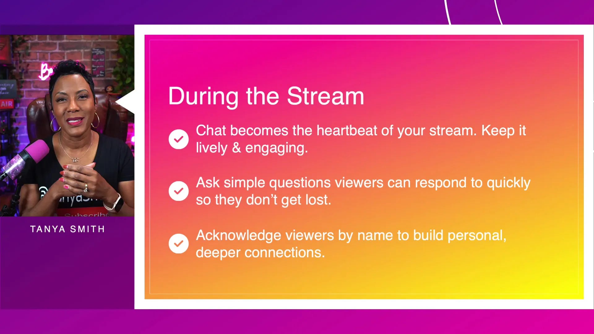 During the Stream: Engage actively with your viewers in the chat. Use prompts, ask questions, and create an interactive environment.